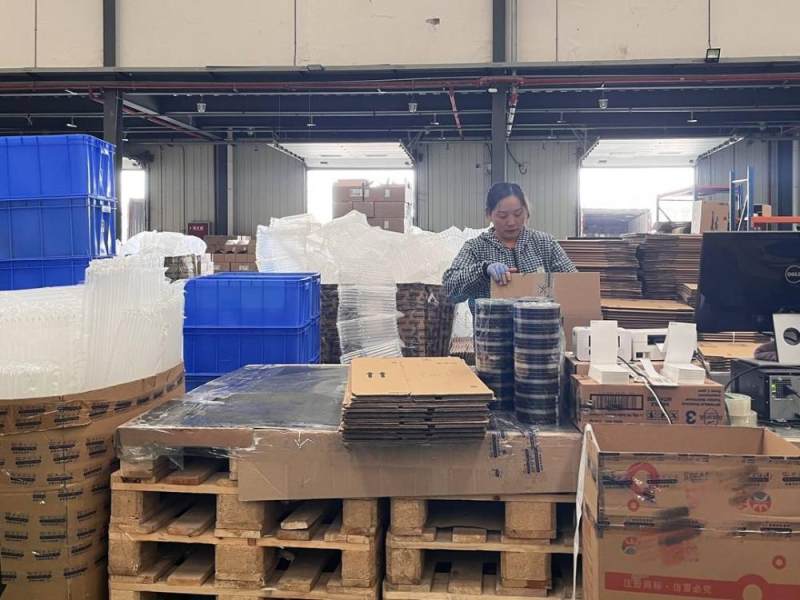 走进成都优时通进出口贸易有限公司保税仓,映入眼帘的是成堆的纸箱和奶粉罐,工作人员正麻利地打包、装箱、封口、贴单。穿过包装区,进入货物分拣区,开着叉车、推着平板物流车的工作人员在其中来回穿梭,忙着运输、分拣货品。