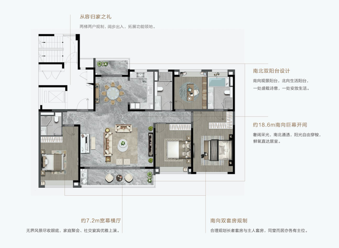 建面约206㎡的大平层产品,它的功能意义不仅仅局限于生活层层递进,更是身份符号的象征。