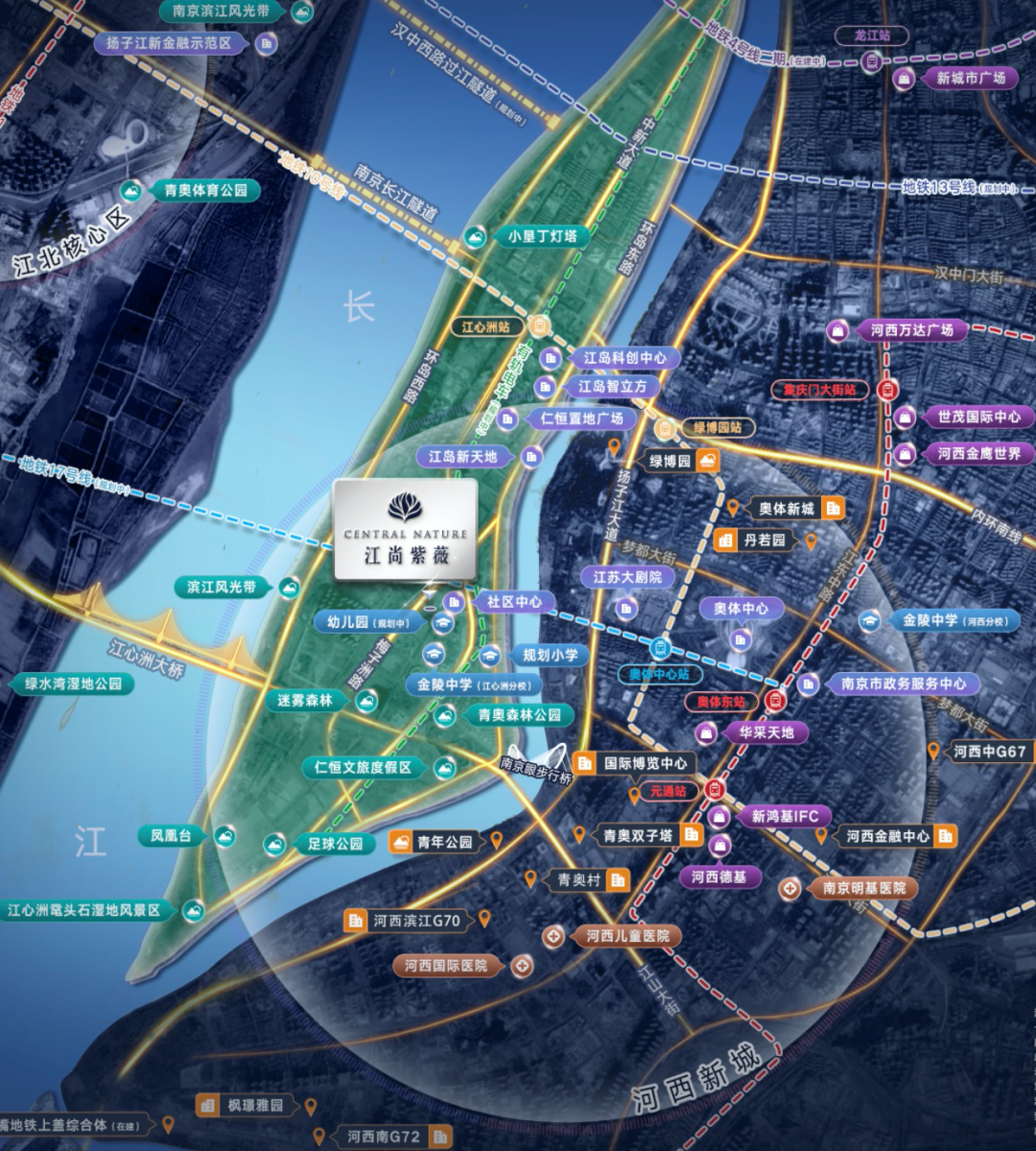 与河西CBD、江北国家新区一桥之隔,占据“离尘不离城”的核心区位,且拥有全南京不可复制的自然资源。