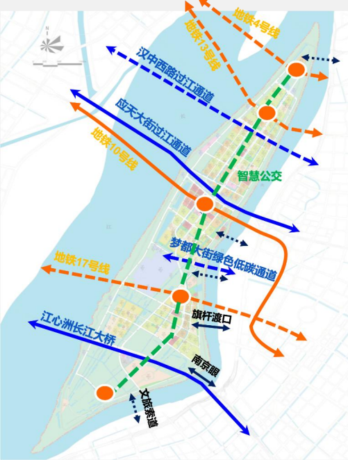 江心洲在南京城市发展中轴上,随着交通不断提速优化,真正做到与两岸紧密相连,通达四方,宜居性变得更加突显。
